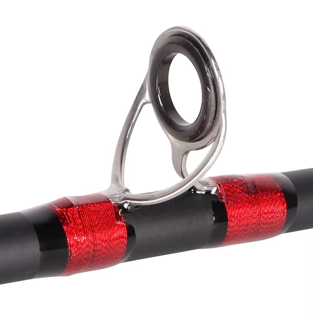 Las guías cuentan con anillas cerámicas diseñadas para trabajar con multifilamento, reduciendo la fricción, evitando desgaste prematuro y mejorando la distancia y suavidad del lance. También ofrecen buena resistencia a la corrosión en ambientes húmedos.