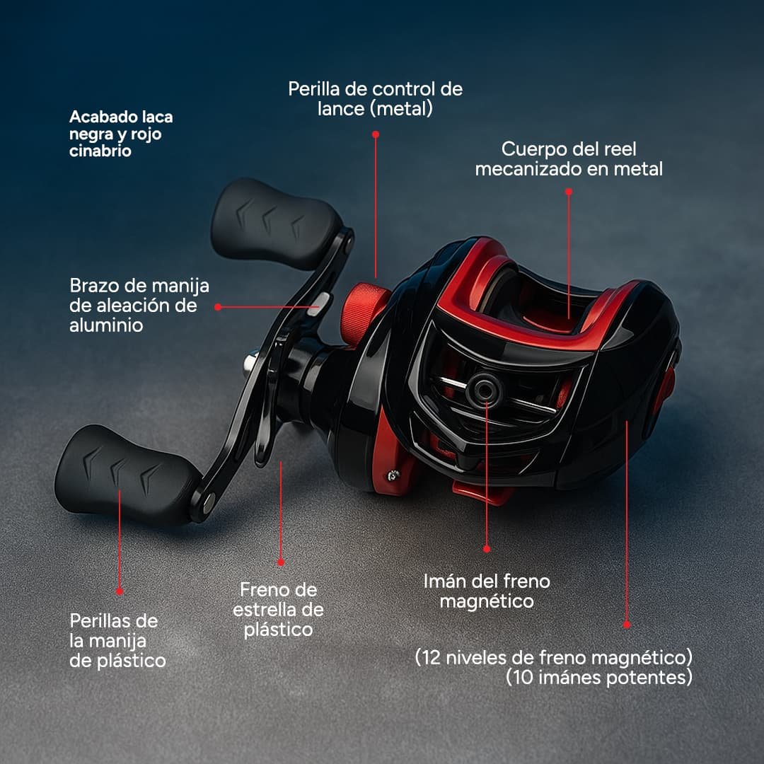 La combinación de cuerpo de aluminio y grafito reforzado reduce el peso sin sacrificar resistencia, lo que lo hace cómodo para pescar durante varias horas seguidas, especialmente en pesca de casteo continuo.