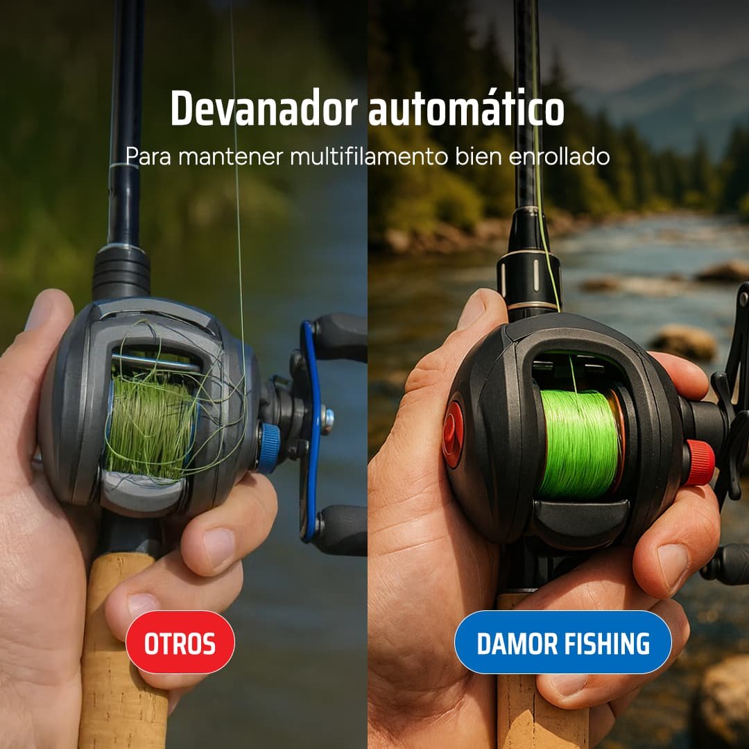 ✅ El reel rotativo DAMOR 7.2:1 te ofrece ✨ suavidad, 🎯 precisión y 🚫 enredos.