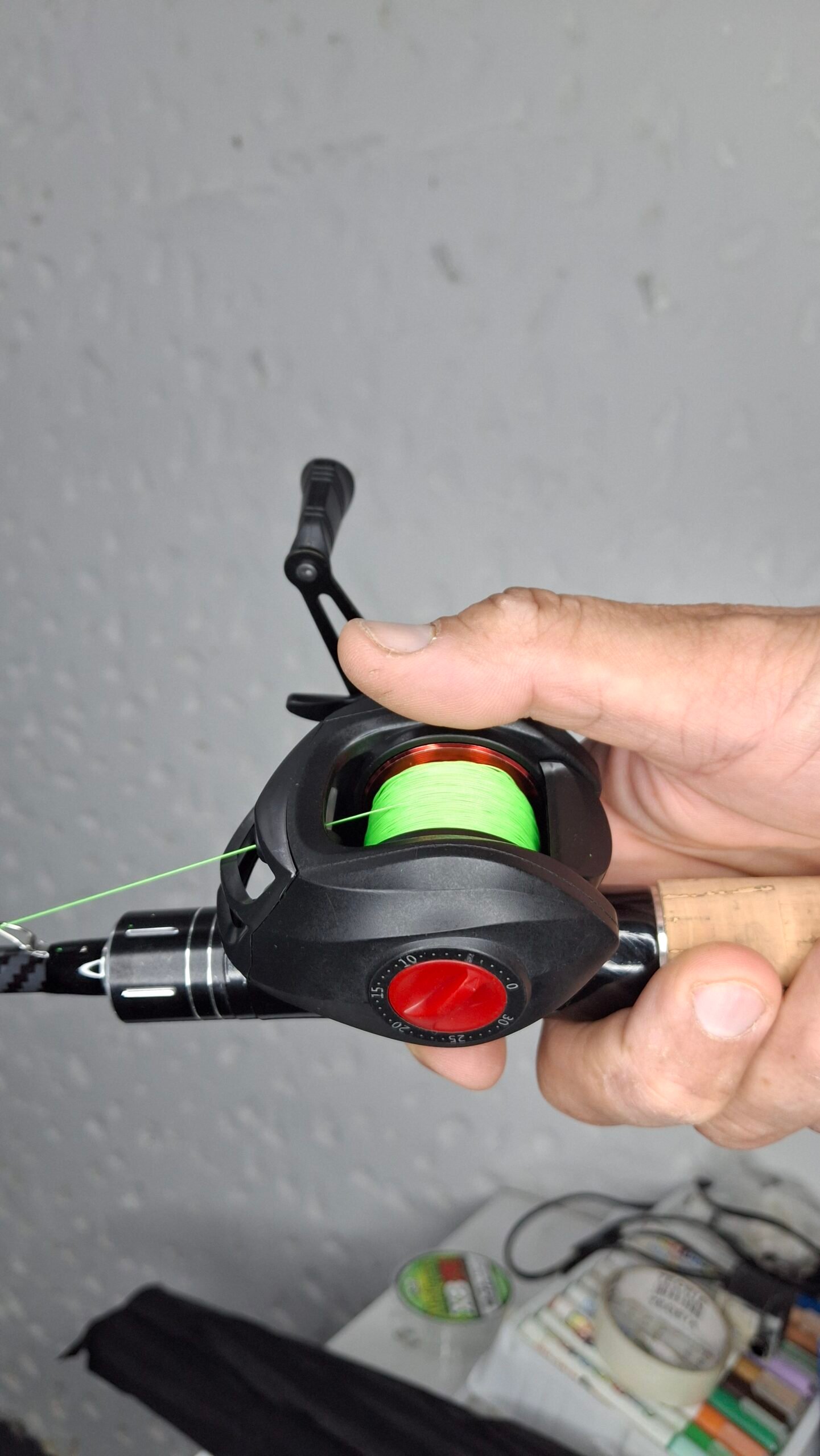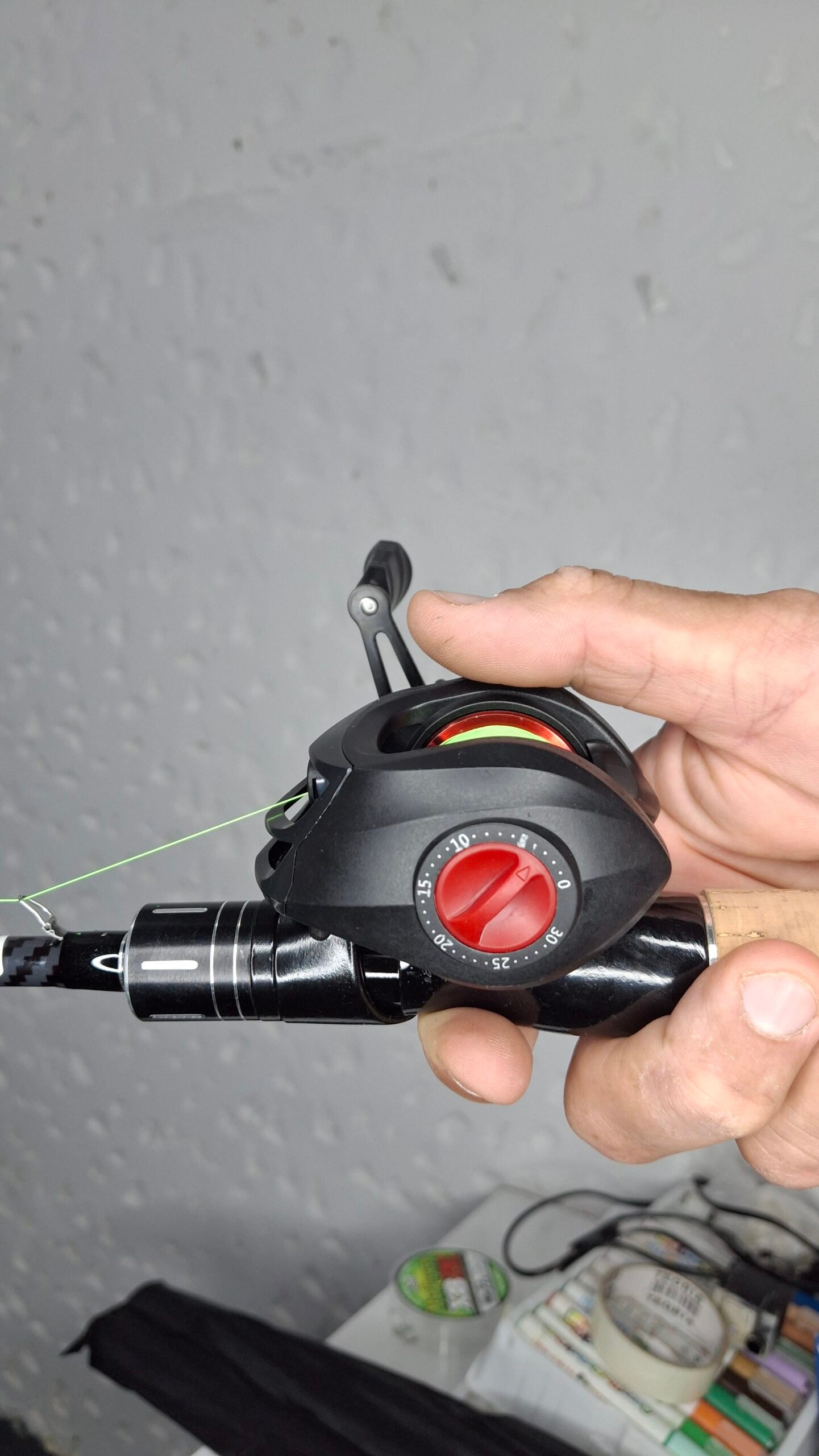 Se usa con caña baitcasting de gatillo y líneas de 10 a 20 lb (nylon o multifilamento). Tiene buena capacidad y drag potente para peces medianos.