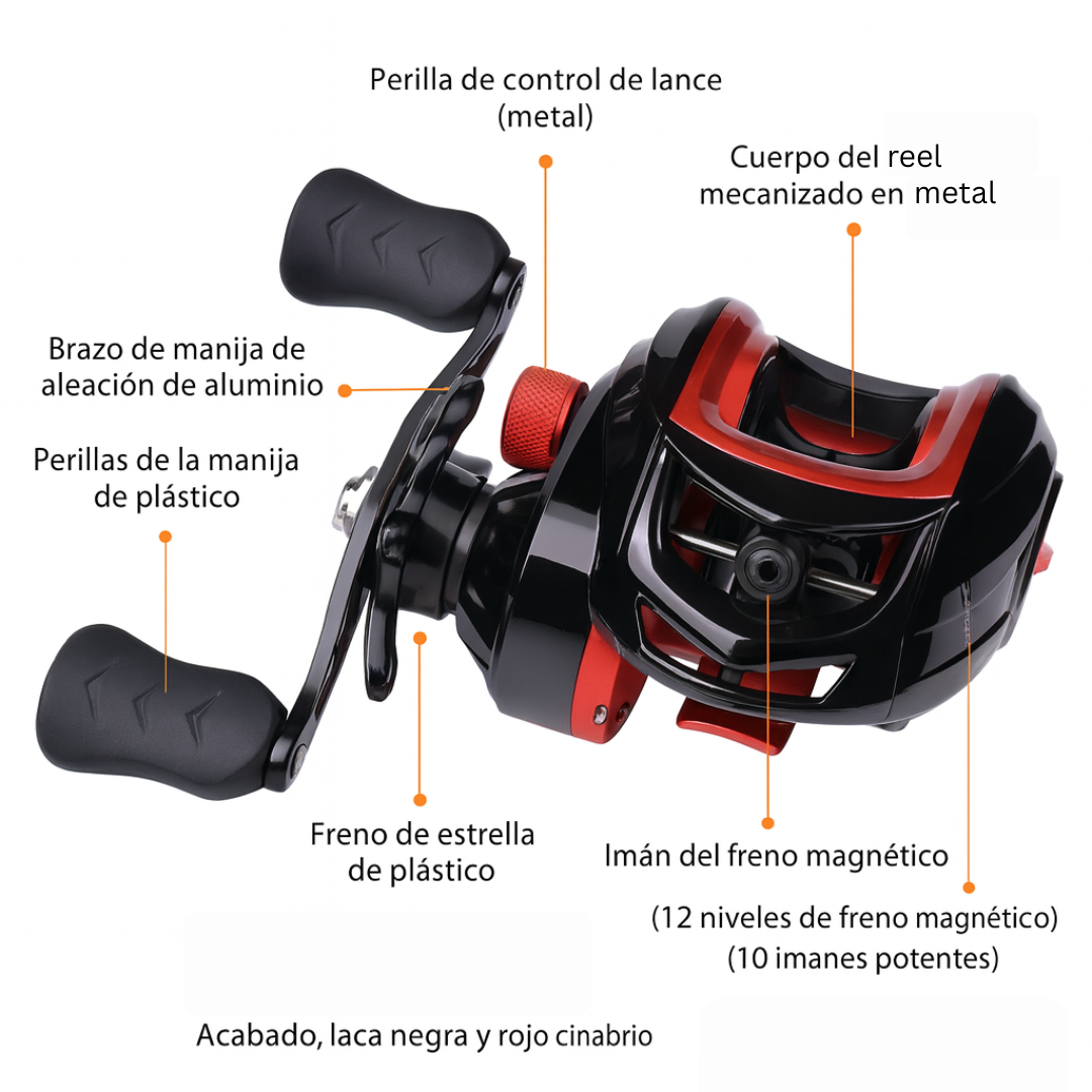 Freno magnético ajustable , para mayor control al lanzar y evitar enredos.